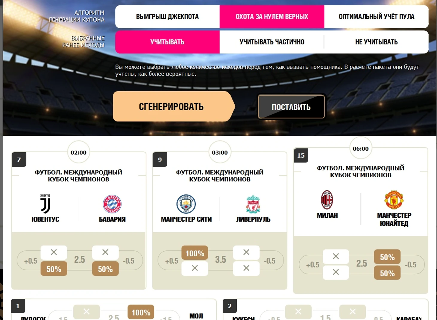 Пожалуй, такого еще не было - чтобы игрок пытался НЕ УГАДАТЬ матчи!-:)Воспользуюсь опцией Помощника, где система сама предложит мне оптимальный вариант охоты за нулем верных