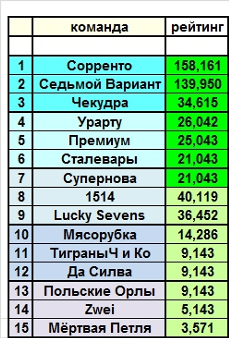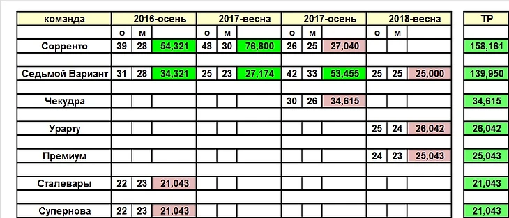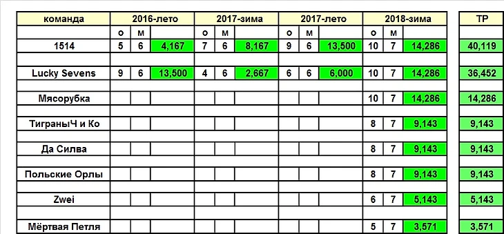 Сначала идут команды, имеющие официальный командный рейтинг на спортсе, который будет им зачтён в случае прохода в Лигу (т.е., за 4 последние сезона).