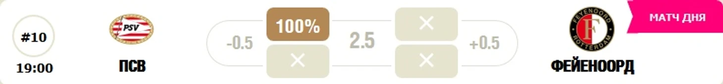 Следующий матч - опять же в рамках национального Суперкубка: ПСВ - Фейеноорд. Победа ПСВ и ТБ 2,5. Аналогично первому матчу.