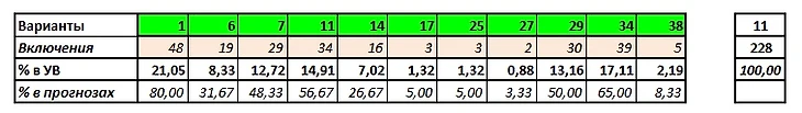 Сумма угаданных вариантов: 228 из 420 (54,29%)
