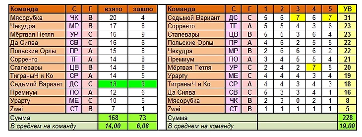 Лучшая команда тура по сумме УВ в целом:  Седьмой Вариант (31 вариант)