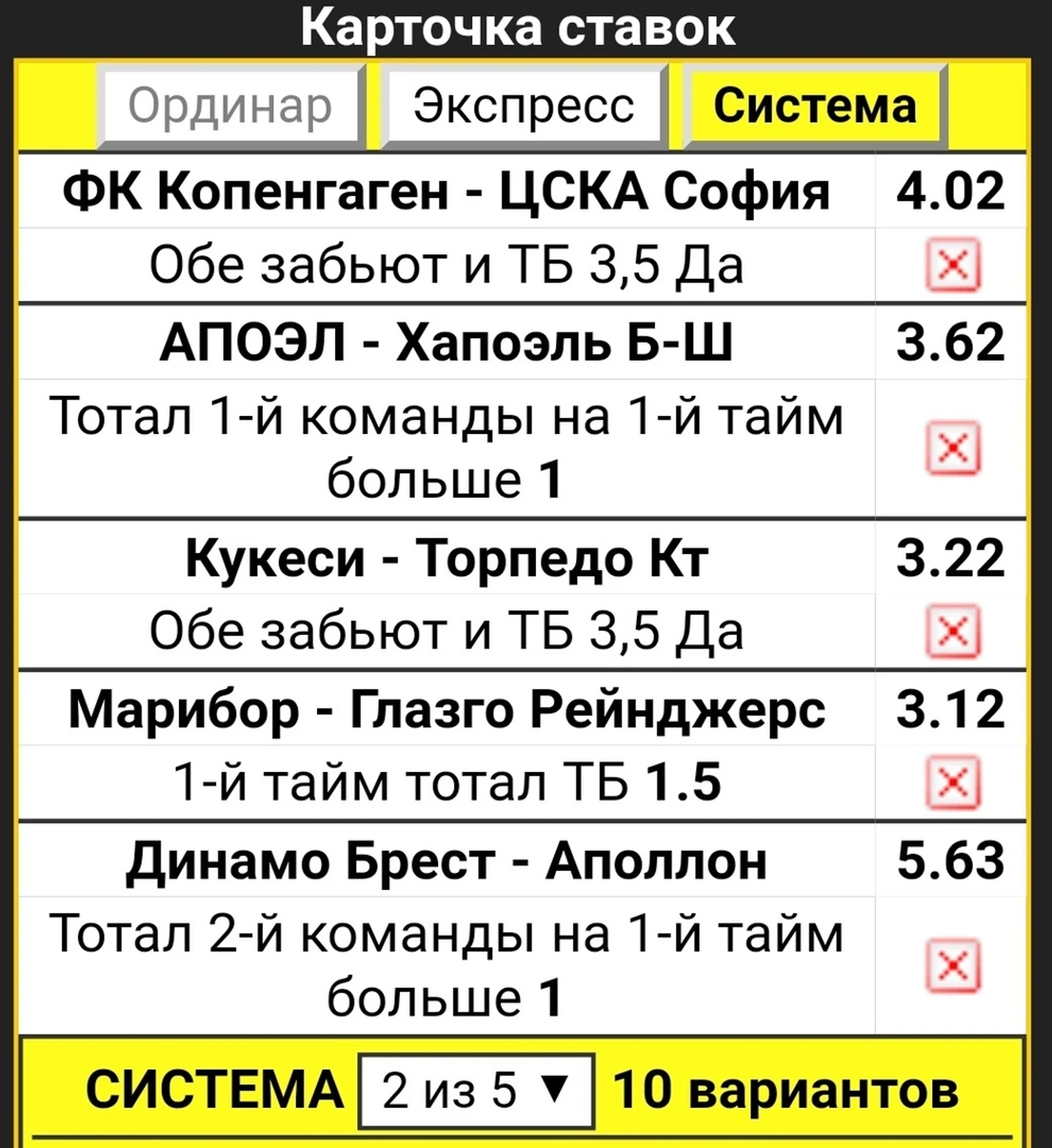 Система №12 "2 из 5" ставка 100р.