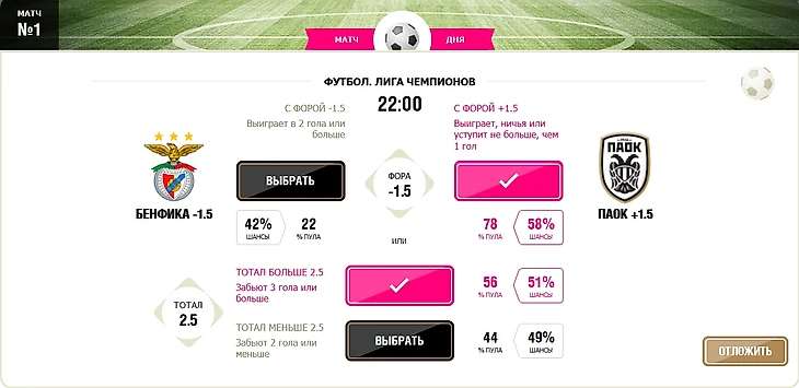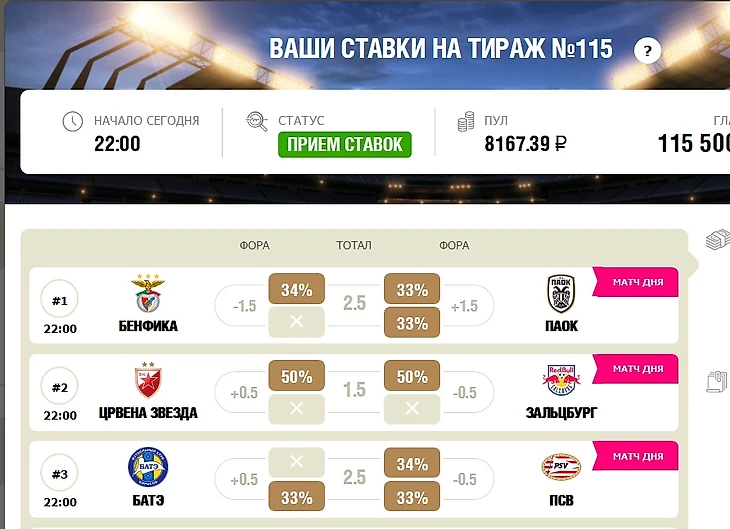 Остальные ставки можно поручить сделать системе, впрочем, если есть желание, то выбрать вручную, аналогично как с Матчами дня (естественно, в зачет Матчей дня другие игры не идут):