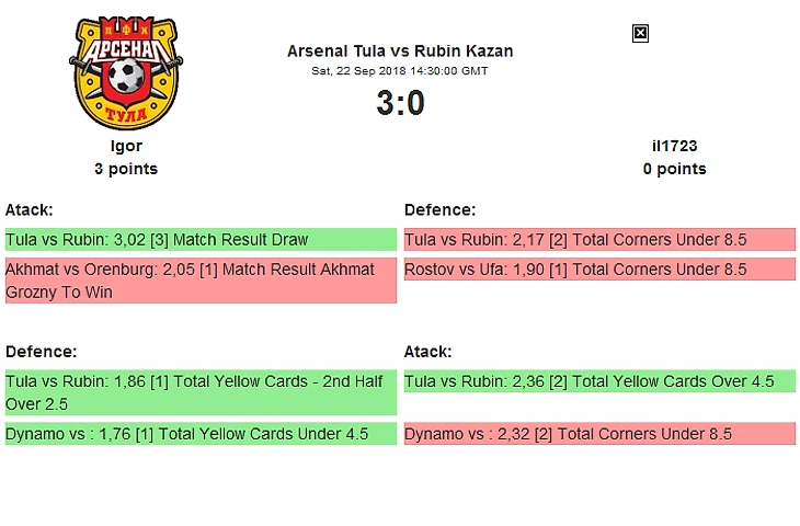 Штирлитц точно решил топить Зенит, даже не проставил ставки на них в прошлом туре, тем не менее победу умудрился урвать ))) Думаю в этом туре ему такой подставы никто не сделает, Шон своими одинадцатерыми уж точно получше il1723-ENG сыграет )))