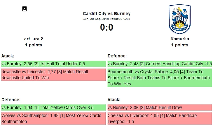 Знаете я вот вам скажу скучно без заходов ставок Kamurka, раньше прям как праздника ждал его ставок, но чтот в последнее время у него не прет, как и у его соперника art_ural2, что решил попробовать новую команду с Кардифа и похоже они до сих пор для него загадка... а говорили еще новичкам везет !