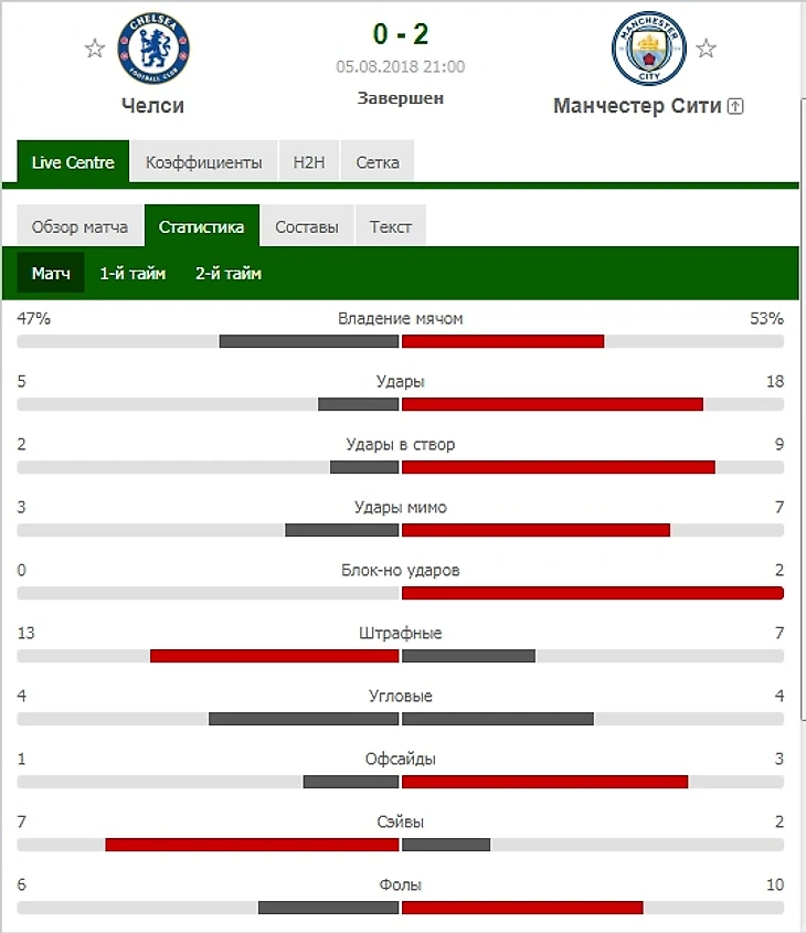 Но во-первых, эта игра состоялась еще когда лидеры Челси только-только выходили из отпусков, и в этой игре даже не приняли участие/вышли только на замену (Азар, Виллиан, Канте)