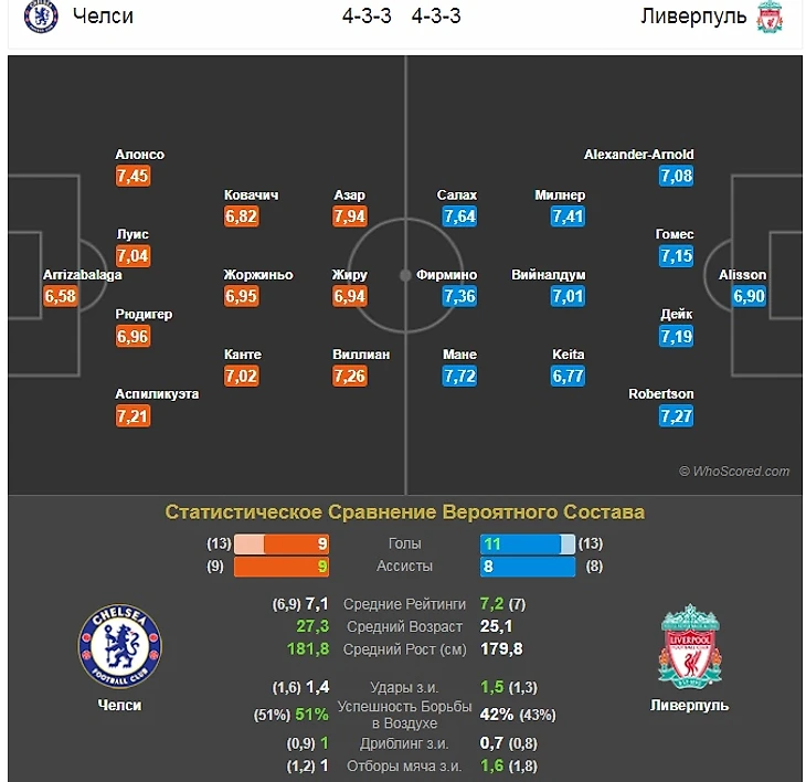 Ловрен играл только 1-й раз в сезоне после травмы, а Матип в принципе проигрывает пока конкуренцию молодому Гомесу + отсутствие Ван Дейка. У Челси Кэхилл играл вместо Давида Луиса (не такая уж большая разница, ИМХО), а Кристенсен в принципе игрок основной обоймы. Отсутствие Алонсо конечно очень существенно, но у Ливерпуля не было сразу 2-х основных крайних защитников(можно поставить знак равенства между этими потерями).Аллисон значит для Ливерпуля гораздо больше Кепы (да и уровень у него выше, что уж там).