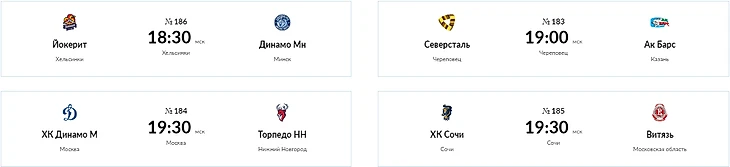 Анонс матчей КХЛ: 8 октября 2018, пн