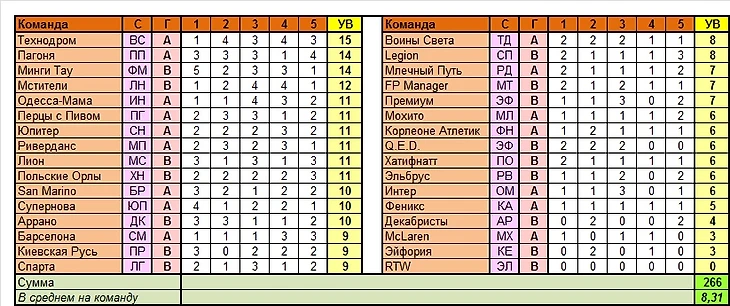 Лучшая команда тура по сумме УВ в целом: Технодром (15 вариантов)