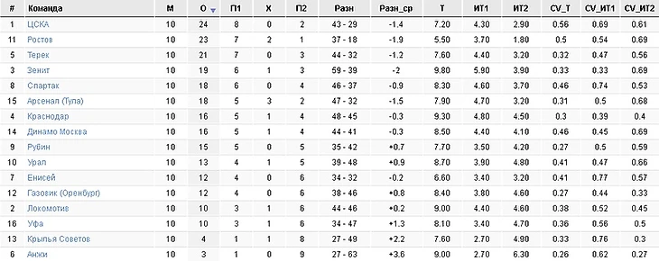 А вот то что я не пропущу, дак это удары в створ. Ростов практически вообще не позволяет бить по своим воротам. Средний тотал их соперников в этом сезоне — 1.8, такое очень редко можно встретить.