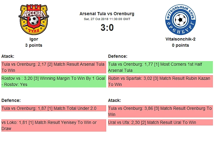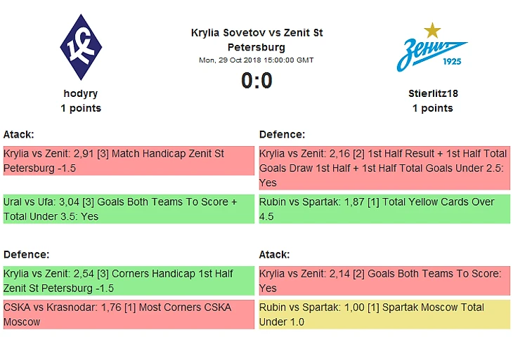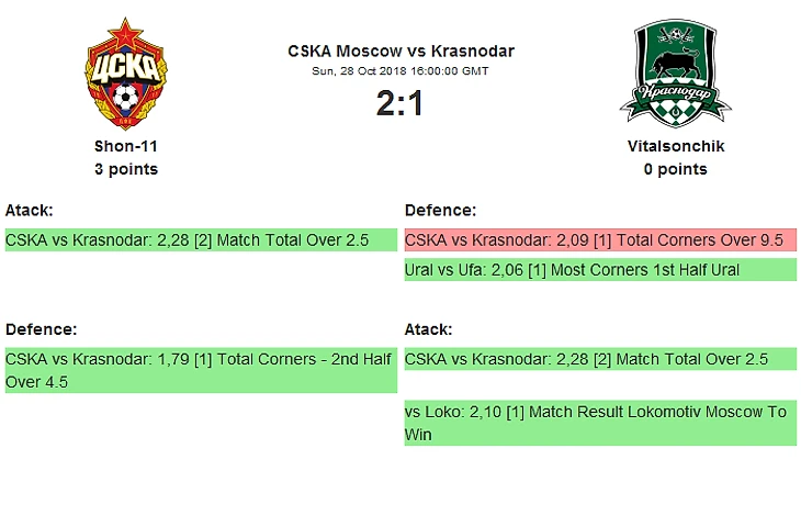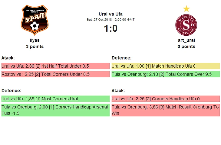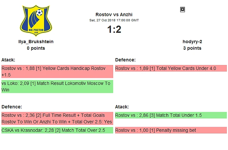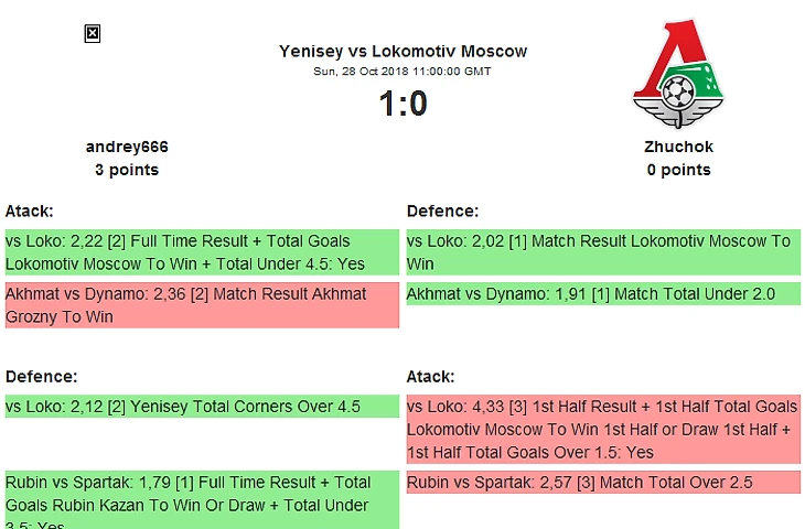 Андрей666 сыграл нетипичные для себя 00, трехи не полетели в 1 матче, поэтому Жучку надо быть внимательным в обороне-может в этом матче в компенсацию прорвать. Владелец Локо, правда и сам умеет стрелять высокими кэфами - в игре с Ростовом не зашли 3 ставки из 4, но зато единственная успешная принесла сразу 3 гола.