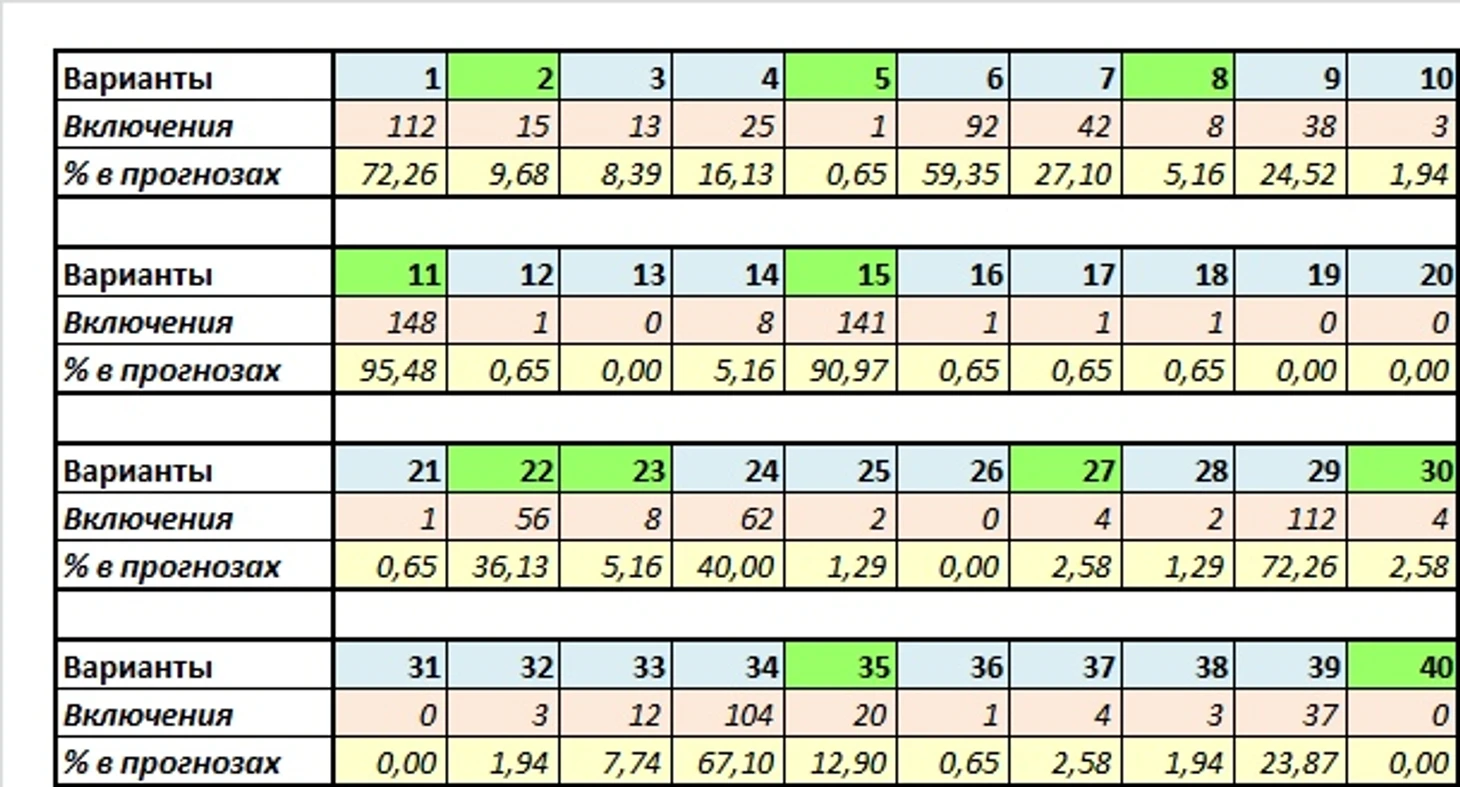Сыграно вариантов: 11 (2-5-8-11-15-22-23-27-30-35-40)
