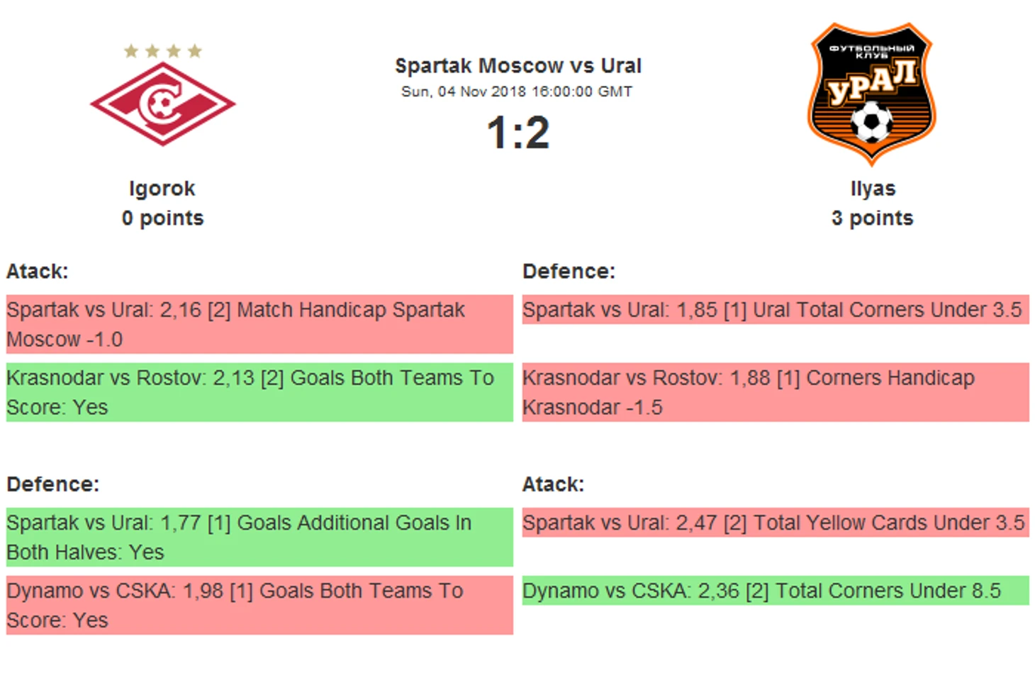 Спартак Игоря принимает Урал Ильяса. Чем тут все закончится сказать сложно. Что на футбольном поле, что в нашем турнире. Равенство очков, примерное равенство сил.. Поживем –увидим, кому улыбнется удача.