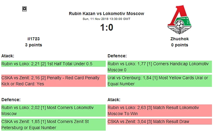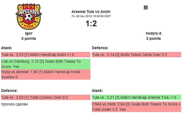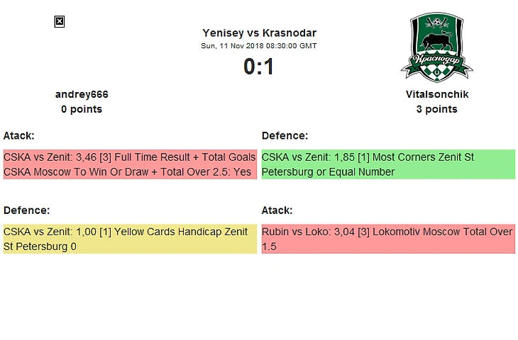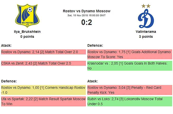 Не идут пока у красноярца 2 и 3 очковые попытки, но стабильность и качественные прогнозы в целом позволяют держаться в топе, несмотря на скромные 1:0 по голам. Витальсончик, имея всего 1 очко меньше, расположился чуть ниже, по соседству со своим клоном.