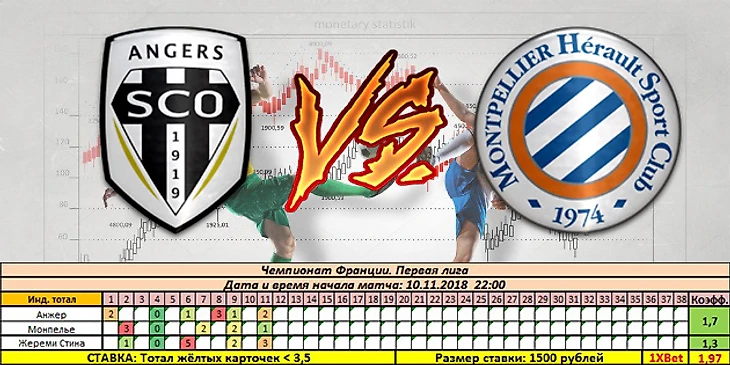 Вот, например, на сегодня есть 7 вариантов ставок: Англия, Испания, Франция, - выбрать можно на любой вкус! Одним из прогнозов Жёлтый слон хотел бы поделиться с подписчиками блога на безвозмездной основе - это ставка на матч Анжер - Монпелье с весьма и весьма привлекательным коэффициентом.