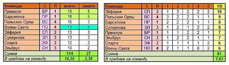 Лучшие игроки раунда по УВ: maidenhead (Эйфория), roman77 (Воины Света) – по 3 варианта