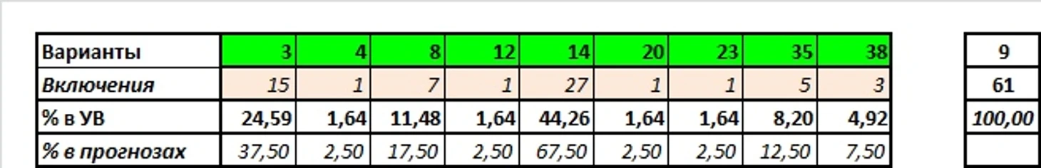 Сыграно вариантов: 9 (3-4-8-12-14-20-23-35-38)