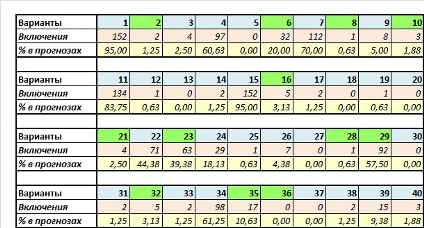 Сумма угаданных вариантов: 225 из 1120 (20,09%)