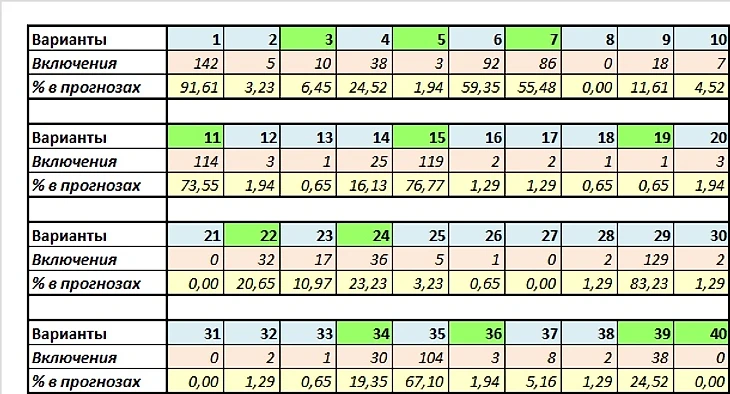 Сыграно вариантов: 12 (3-5-7-11-15-19-22-24-34-36-39-40)