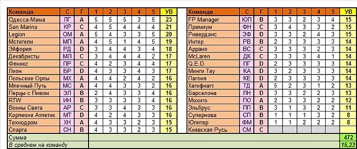 Лучшая команда тура по сумме УВ в целом: Одесса-Мама (23 варианта)