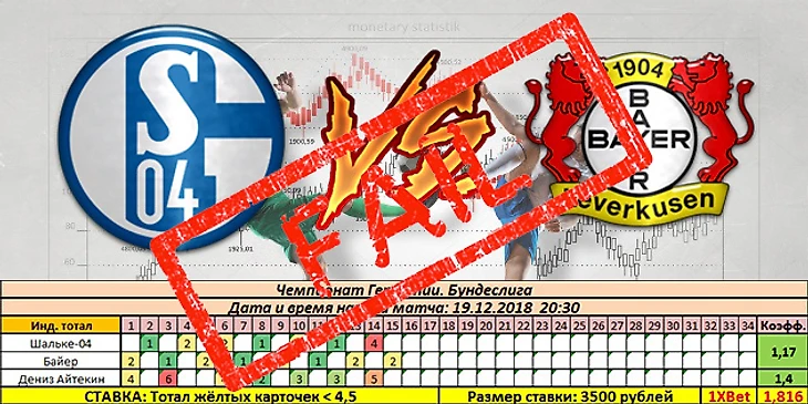 В прошедшей во вторник встрече Шальке и Байера голы и футбол закончились в первом тайме, а во втором наступило время борьбы и "горчичников": 7 карточек за второй тайм, 8 в сумме за матч, по 4 каждой из команд. Ставка проехала мимо цели.