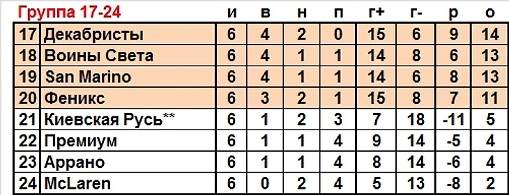 Но ты помни, что для вам для прохода в весеннюю Суперлигу нужно финишировать в топ-6 нашей группы, 7 место путёвку не даёт