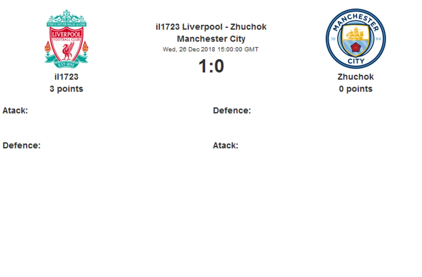 Потерпевший 2 поражения кряду Ливерпуль Ильяса попытается не отстать от лидирующей группы, взяв 3 очка у Манчестер Сити Zhuchok. Вот уже кого не ожидали увидеть на дне таблицы.. Но когда –то ведь его должно прорвать !