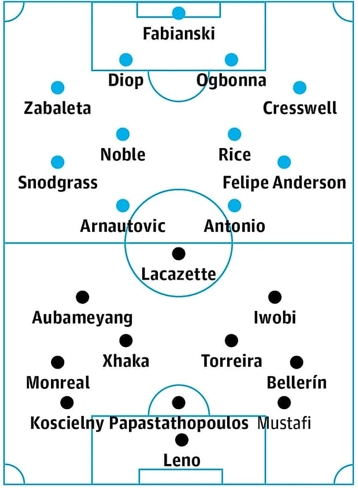 Варианты у Эмери в этой линии, судя по всему, добавятся на фоне возвращения Мустафи, Беллерина и Монреаля. Однако же слабость этой линии и склонность ее к ошибкам никуда не уйдут. А гостевой фактор матча и потенциальное давление соперника должны лишь увеличить вероятность и частоту этих ошибок. "Вест Хэм", может, и лишен впереди Ярмоленко, Эрнандеса, Лансини и того же Уилшера, но в распоряжении чилийского наставника все еще есть Кэрролл, Перес, Антонио, Андерсон и Насри, который готов выйти на поле. Не будем забывать и про Арнаутовича - австриец хочет уехать в Китай на заработки, на фоне чего скандалит в клубе, но сыграть должен, по слухам. Так что как собирается справляться оборона гостей, не очень понятно. "Вест Хэм" способен и созидать, но гости играют так, что пространство предоставляют своим оппонентам. Так что задача "Вест Хэма" даже упрощается.