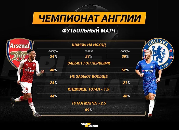 Аналитики букмекерской компании Пари-Матч оценивают вероятность победы «канониров» в 34%, а шансы «Челси» – 39%. Ничья, которая не устроит клуб Эмери оценена в 29%. Напомним, последний матч между этими соперниками закончился со счетом 3:2 в пользу «синих».