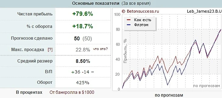 Баскетбол +79.6% прибыли (при средней ставке 8.5%) ROI 18.7%