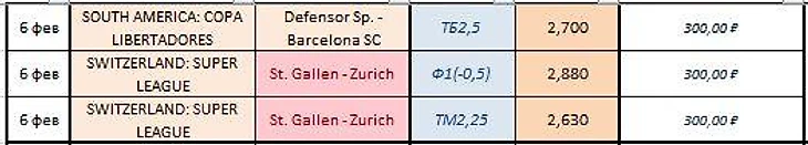 6 фев. SWITZERLAND: SUPER LEAGUE St. Gallen - Zurich. ТМ2,25 за 2,630