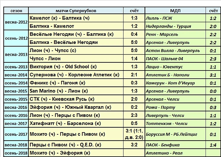Сейчас будет сыгран 14-ый розыгрыш СК, первые 3 проходили в двухматчевом формате, затем перешли к режиму одной игры с применением дополнительных вариантов в случае ничьи по основным семёркам. Единственный раз, когда "допы" были активированы, произошёл год назад, с участием Мохито, одного из нынешних претендентов. В ранге чемпиона команда Махачкалы зарубилась против Перцев с Пивом на матче Бундеслиги и одолела соперника в "овертайме". Через полгода уже Перцы взяли трофей, обыграв Q.E.D., и сохранили Суперкубок на стороне "чемпионов". По общему числу титульных побед чемпионы вплотную подобрались к обладателям Кубка, 6-7. Мохито может сравнять данный счёт, а также повторить рекордную на текущий момент серию выигрышей одних "титуларов", трижды подряд, с весны 2016 по весну 2017 СК брали победители Кубка Ямато. Серия, к слову, началась с матча Эйфория - Южный Квартал, когда эйфы уступили, 0:2, и сейчас maidenhead со своими товарищами предпримут вторую попытку завоевать Суперкубок.
