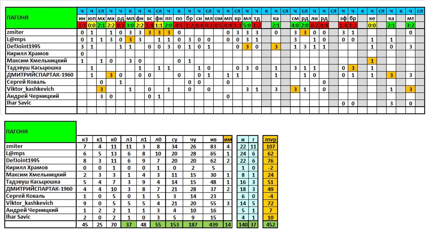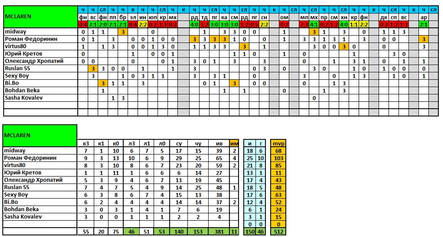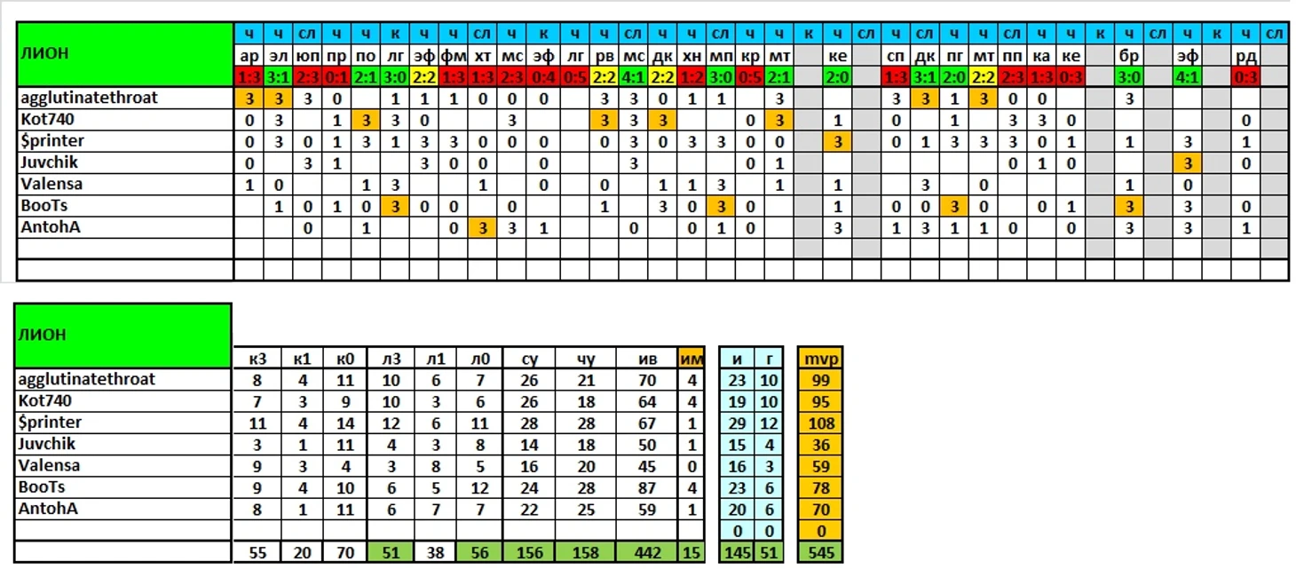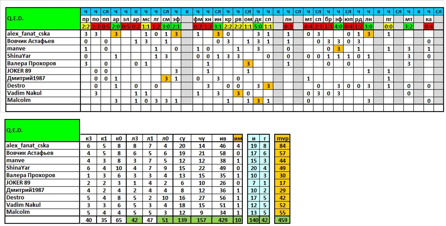 Продолжаем выпускать итоги сезона, в ближайшей паре постов представлены результаты команд и игроков по исходам матчей/дуэлям и другим компонентам, формирующим рейтинг mvp.