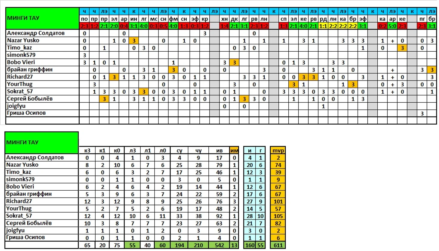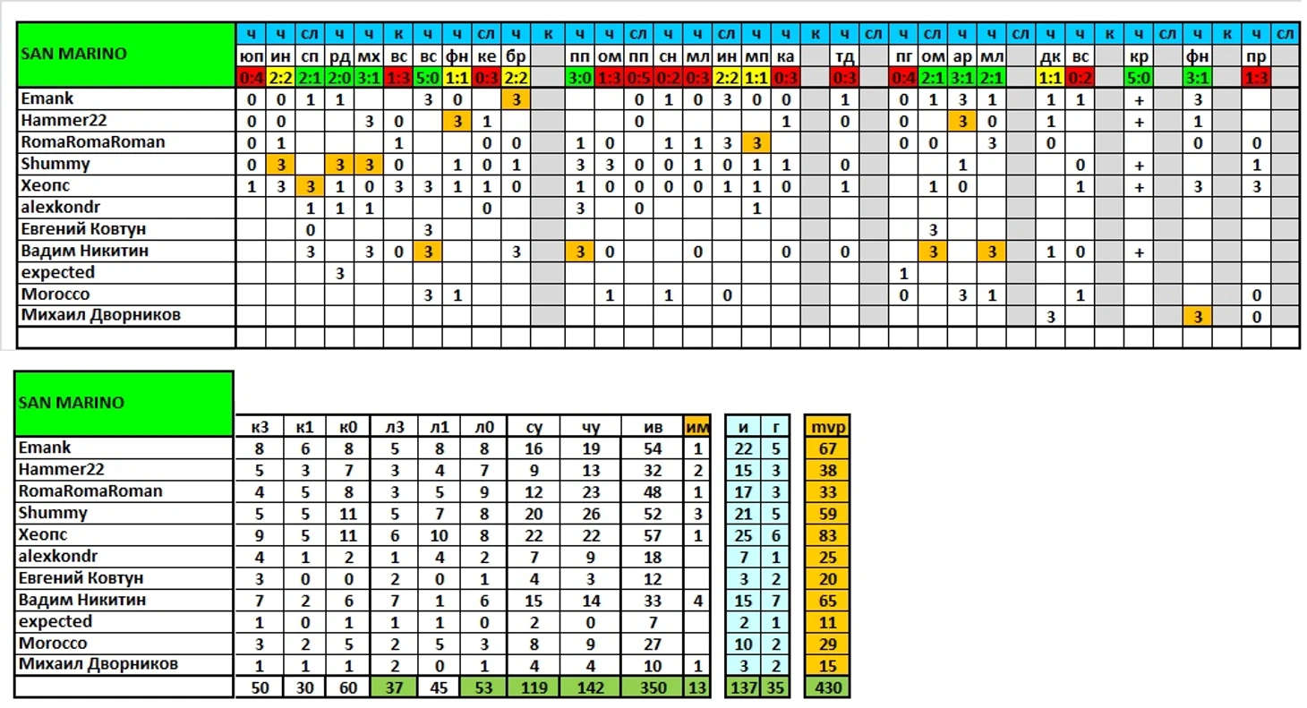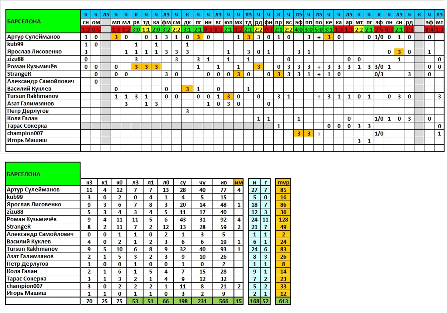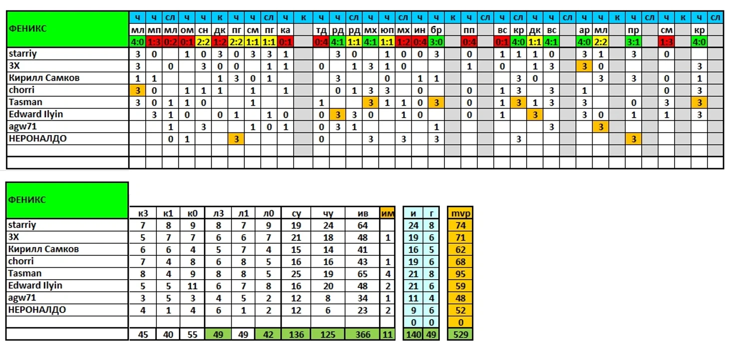 Продолжаем выпускать итоги сезона, в ближайшей паре постов представлены результаты команд и игроков по исходам матчей/дуэлям и другим компонентам, формирующим рейтинг mvp.