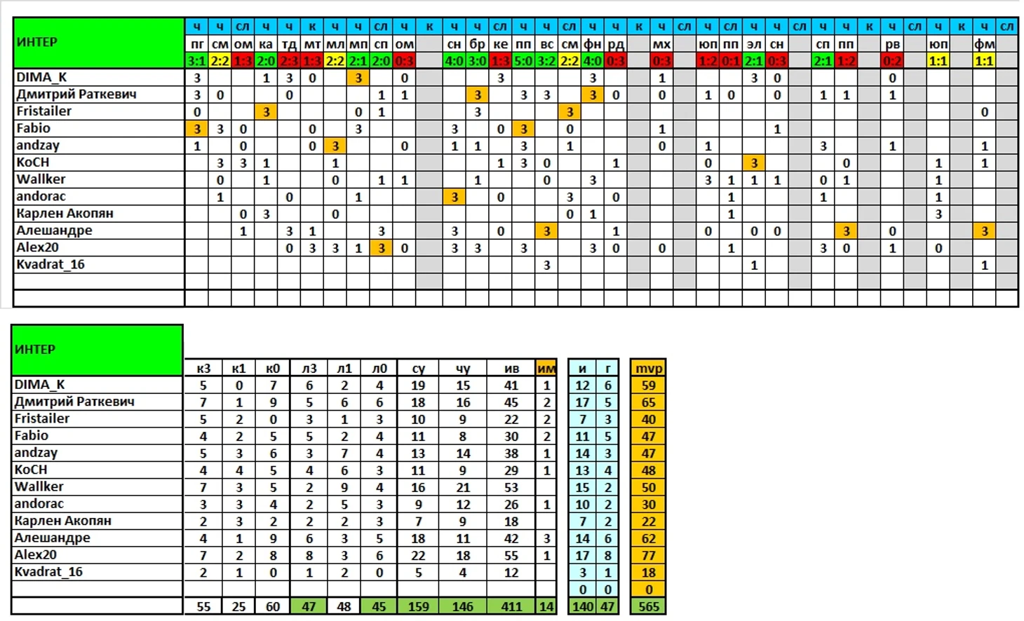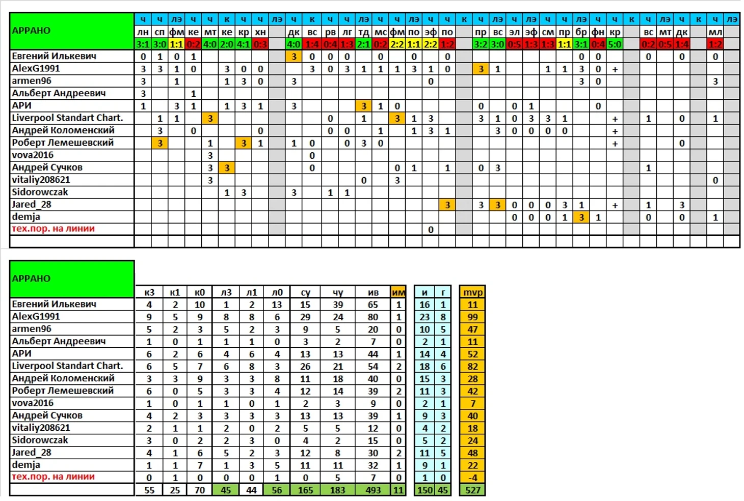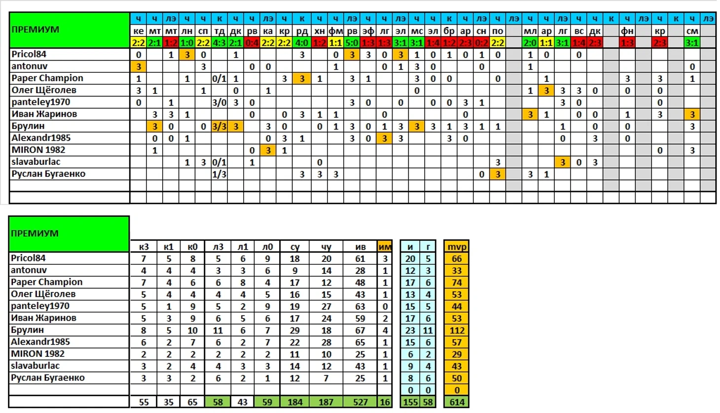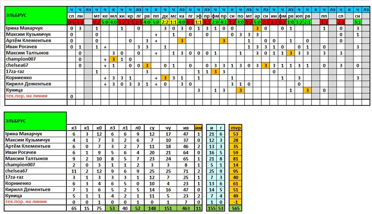 Продолжаем выпускать итоги сезона, в ближайшей паре постов представлены результаты команд и игроков по исходам матчей/дуэлям и другим компонентам, формирующим рейтинг mvp.