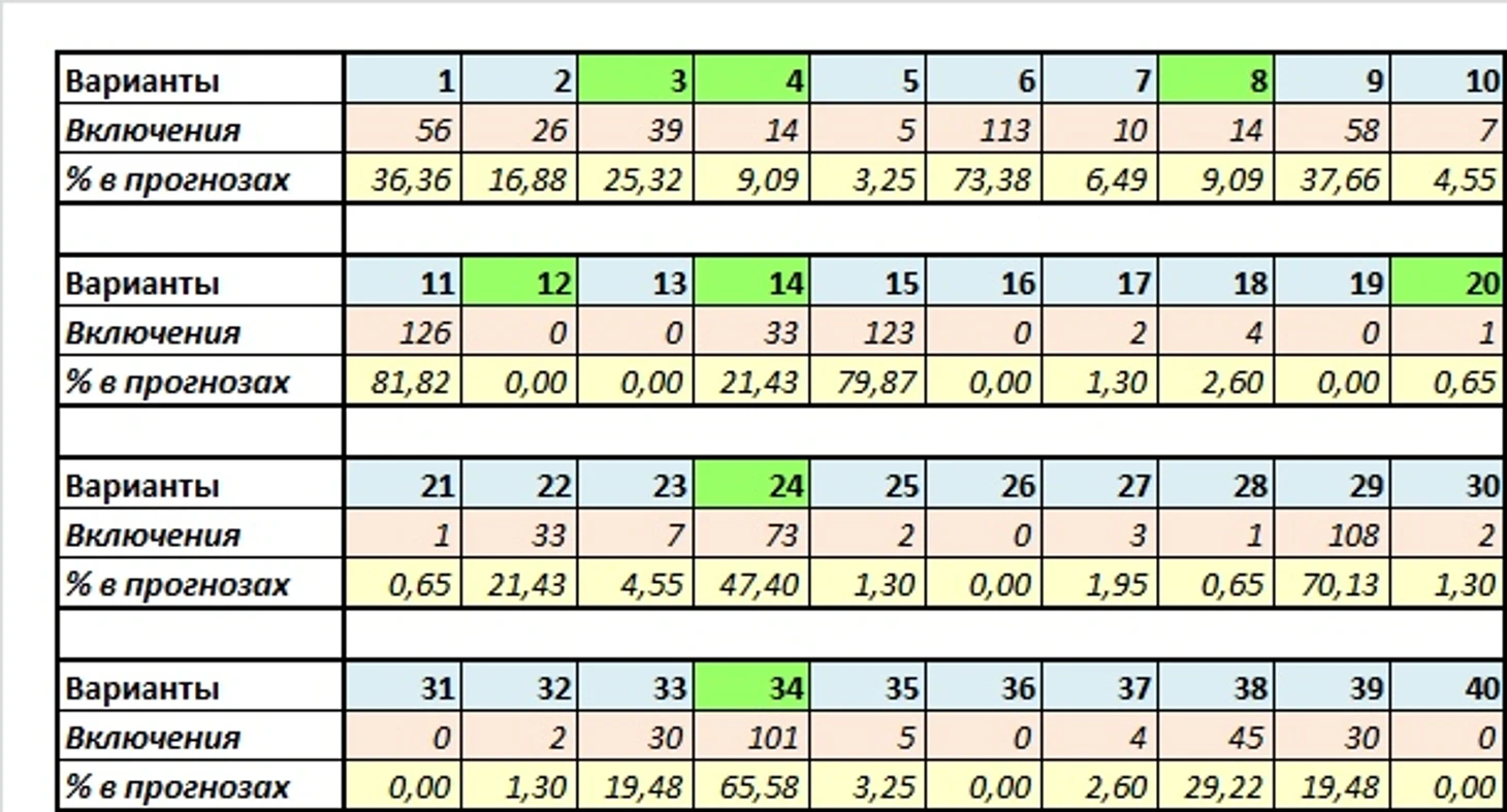 Остались неиспользованными: 8 (12-13-16-19-26-31-36-40)