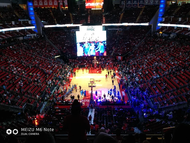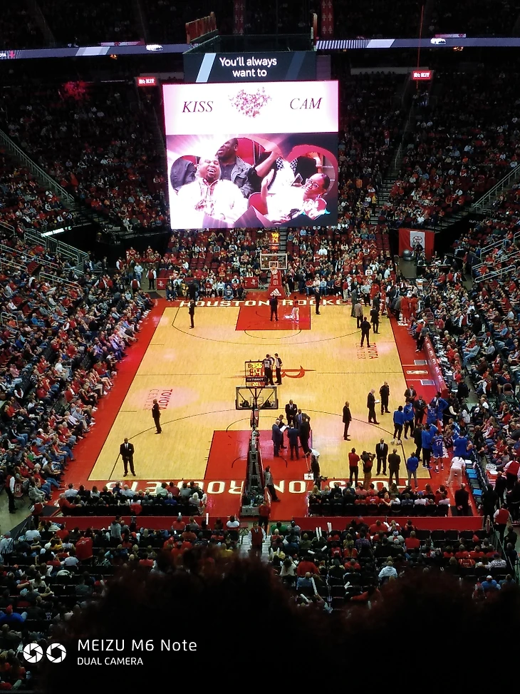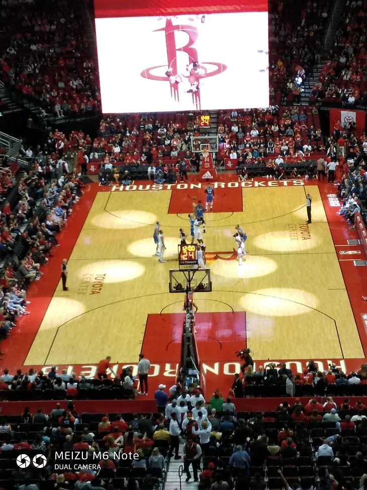 К началу встречи трибуны постепенно заполнялись, рядом со мной сидели два китайца, которые также впервые были на НБА, ну я не стал их огорчать тем, что Яо Мина они сегодня не смогут лицезреть, в итоге, они ушли по ходу матча, вероятно, осознав это:) Во время представления команд было световое шоу, зрители кричали и аплодировали своим любимцам, ну и буквально взорвались , когда Джеймс Харден появился на паркете. Гимн звучал в живом исполнении, но как-то не впечатлило, видел примерно и получше, правда, в рамках трансляций. Очень переживал, что качество моего зрения вкупе с невысокой стоимостью билетов не позволит мне нормально смотреть игру, однако, был приятно удивлен обратному. О ходе встречи между «Рокетс» и «Мэджик» повествовать не буду, вы и так знаете, что там было. Помню, что ставил на Вучевича, он хорошо атаковал, но почему-то черногорец решил не набирать очки в четвёртой четверти, в итоге 2-3 не хватило.
