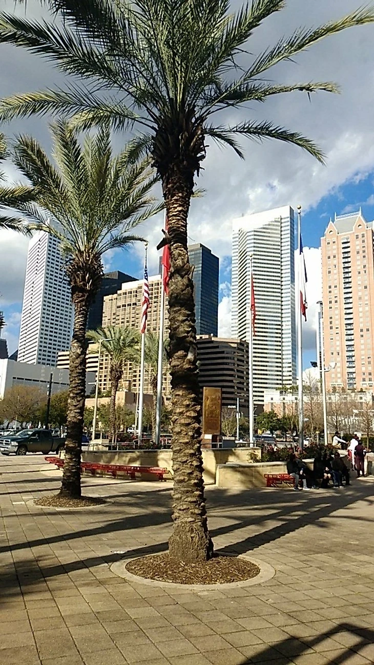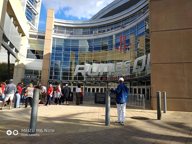 В день матча заблаговременно приехал к Houston Toyota Center, вокруг арены пальмы ( температура воздуха примерно 22 градуса), мемориальная доска Хакима Оладжувона, баннеры со всеми действующими игроками Рокетс, четыре входа с четырех улиц, рядом баскетбольный мини-стадион, где оттачивали свое мастерство будущие участники драфтов. Минут 30 потратил на разбор полетов с оплаченными, но не купленными билетами, что разрешилось, тем, что мне на экране монитора показали мои транзакции, которые были отменены, то есть деньги не поступили американцам, а зависли в моем банке (в начале февраля мне их вернули).