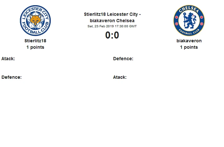 Stierlitz18 со своим Leicester City в битве соседей по турнирной таблице ( у обоих по 3 очка) примет Chelsea biakaveron.