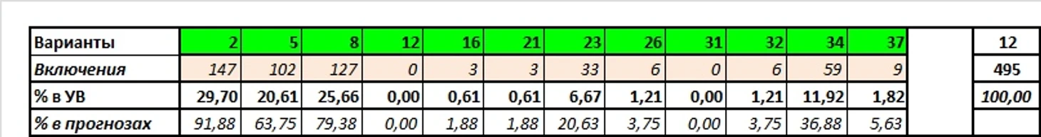 Сыграно вариантов: 12 (2-5-8-12-16-21-23-26-31-32-34-37)