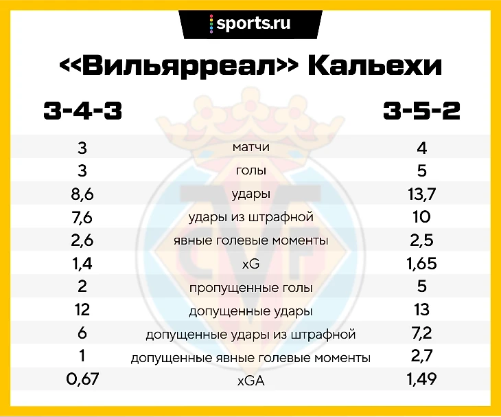 В первых трех матчах после возращения Кальехи («Эспаньол», «Вальядолид», «Спортинг» в гостях) «Вильярреал» действовал по 3-4-3, но в последних четырех («Севилья», «Спортинг» дома, «Атлетико», «Алавес») команда перешла на 3-5-2. На предматчевой пресс-конференции я спросил у Семака, принципиально ли для «Зенита», какую формацию Кальеха выберет в Питере. Тренер ушел в рассуждения о причинах смены расстановок: «Не знаю, с чем это связано. Возможно, «Вильярреал» хочет максимально обезопасить свои ворота и сыграть более надежно, сбалансированно, потому что в чемпионате не все так хорошо, как хотелось бы».