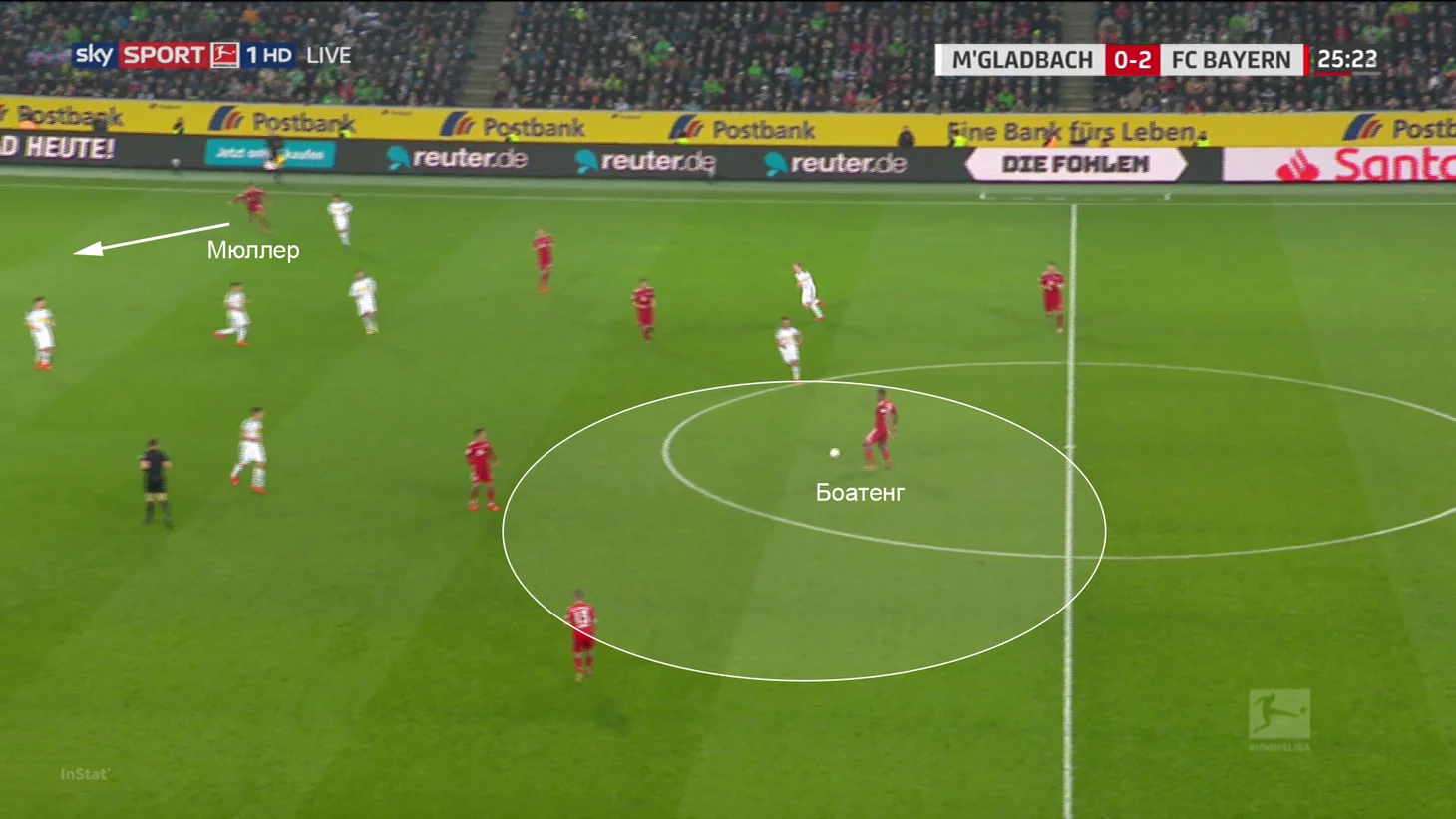 В прошлом сезоне (и ранее по карьере) Боатенг был еще сильнее в таких вещах. В этом году Нико Ковач слишком часто заставляет его играть в роли левого центрального защитника (1047 минут в этом сезоне), хотя Боатенг привык играть по центру, но правее (284 минуты). Этот аспект действительно влияет на игру защитников в пас.