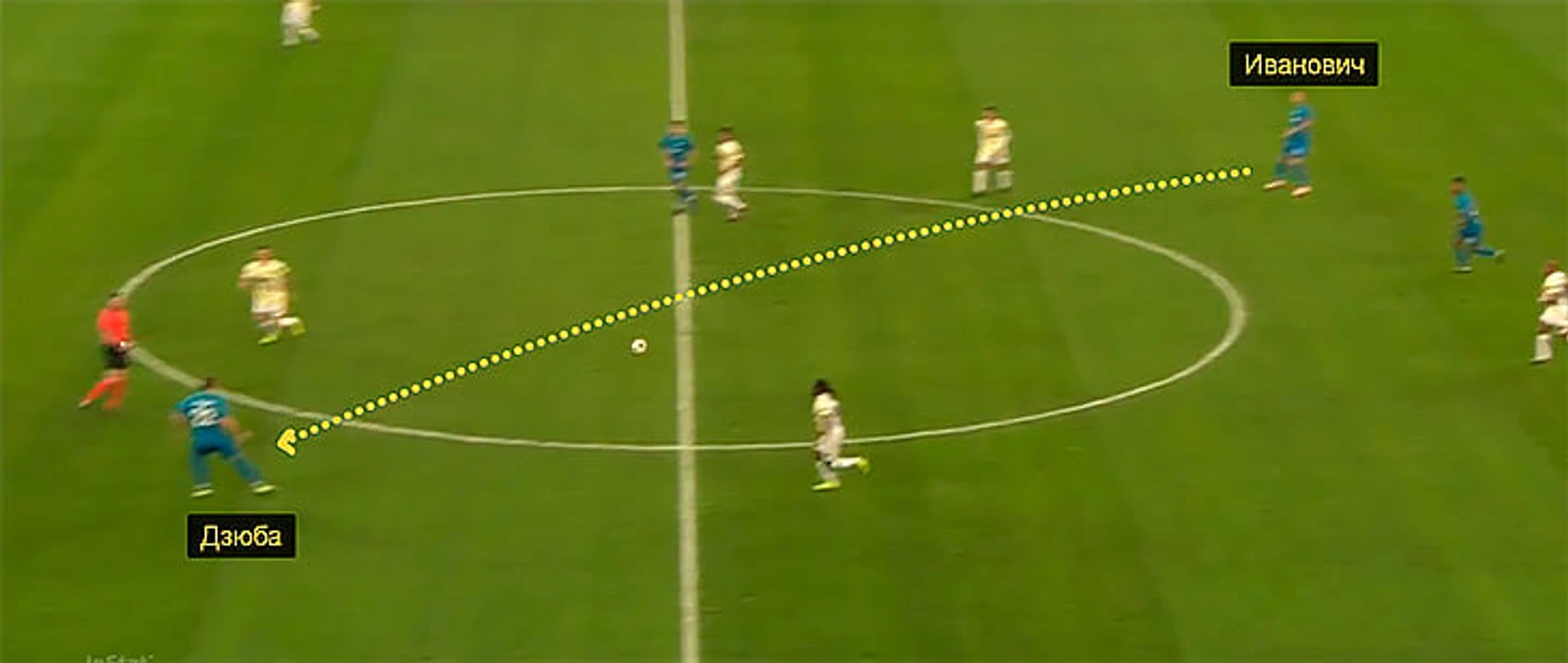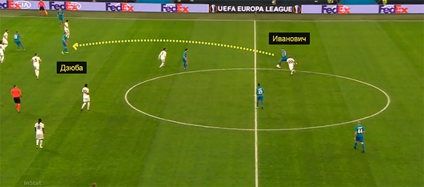 При этом Дзюба часто вступает и в верховые единоборства – в основном из-за неспособности «Зенита» выйти из-под прессинга 3-в-3 и большом количестве передач назад на Лунева. В матче с «Уралом» Артем 7 раз боролся вверху, а против «Вильярреала» – вообще 17 (в том матче комбинация Лунев-Дзюба стала самой популярной у команды Семака).