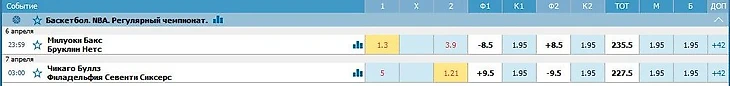 Возможно, Баденхолзер даст Яннису Адетокумбо отдохнуть. Все-таки этот матч для «Бакс» ничего не решает. Несмотря на последние неудачи, «Бруклин» окажет сопротивление сопернику. Ведь на кону путевка в плей-офф. В связи с этим играю фору на гостей.