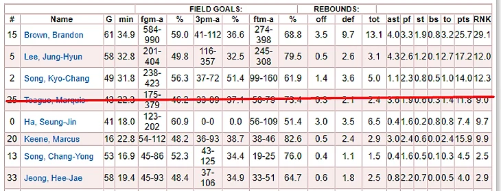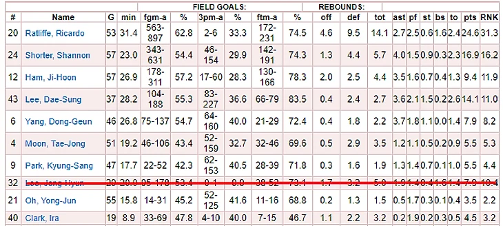 Из корейцев выделяется Ли и Сонг, которые набирают очень даже много, 17.2 и 14 очков соответственно, они гарантированные игроки старта, дополняет их огромнейший Ха, который не играет много, и врядли больше 20 минут сыграет.