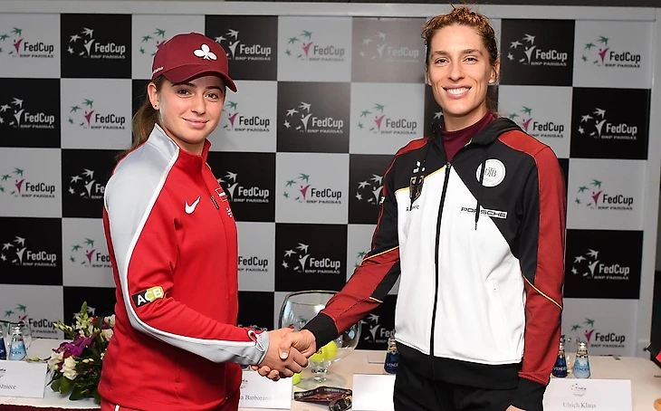 Открывать немецко-латвийское противостояние суждено было 29-й ракетке мира Ostapenko Jelena и 71-й в мировом рейтинге Petkovic Andrea.