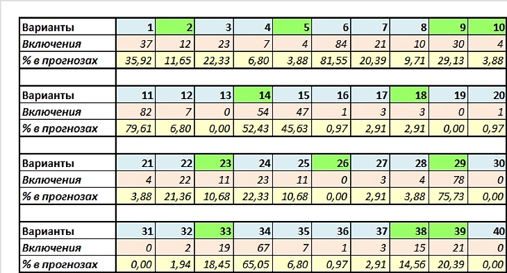 Остались неиспользованными: 6 (13-19-26-30-31-40)