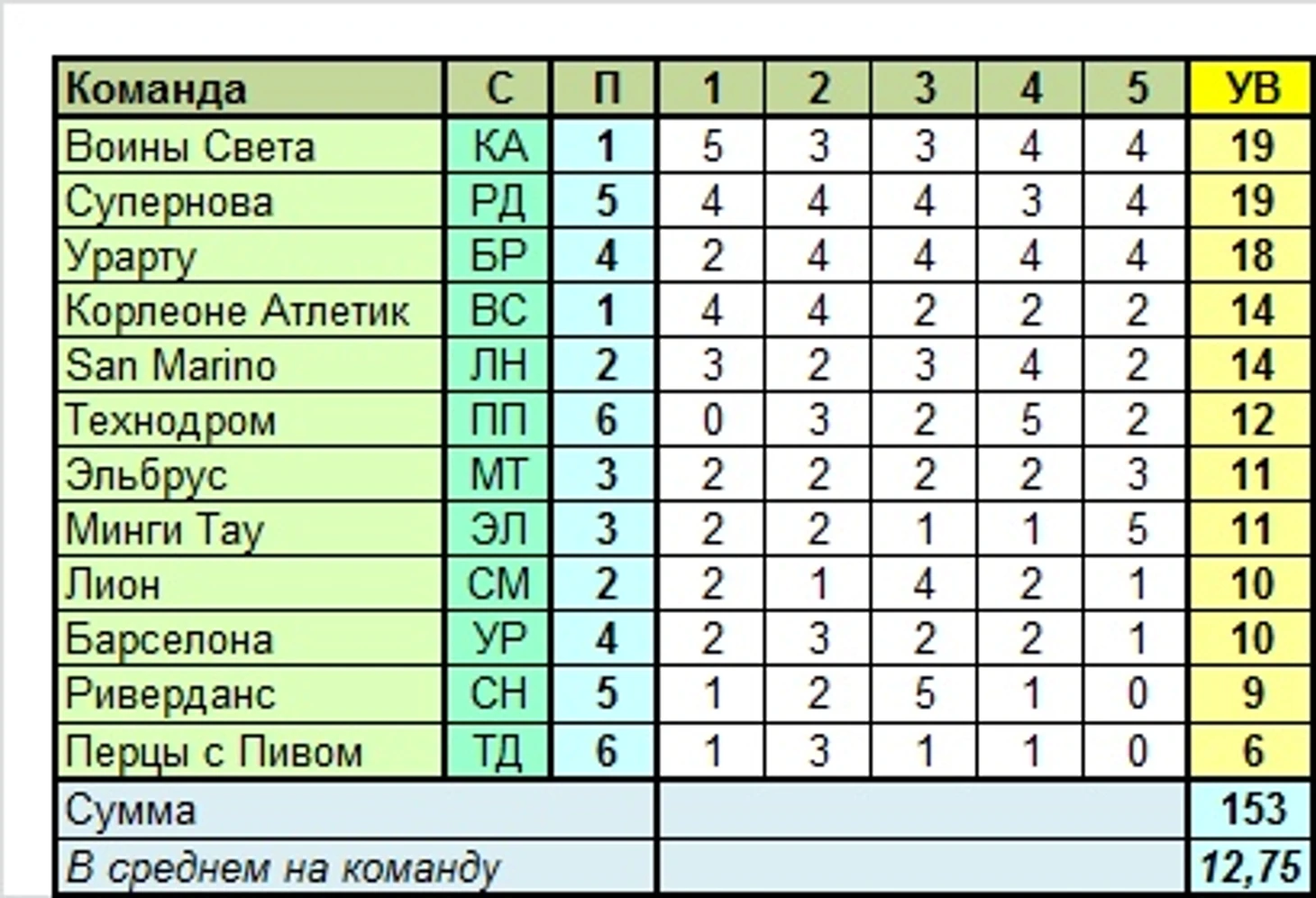 Лучшие команды раунда по УВ в целом: Воины Света, Супернова (по 19 вариантов)