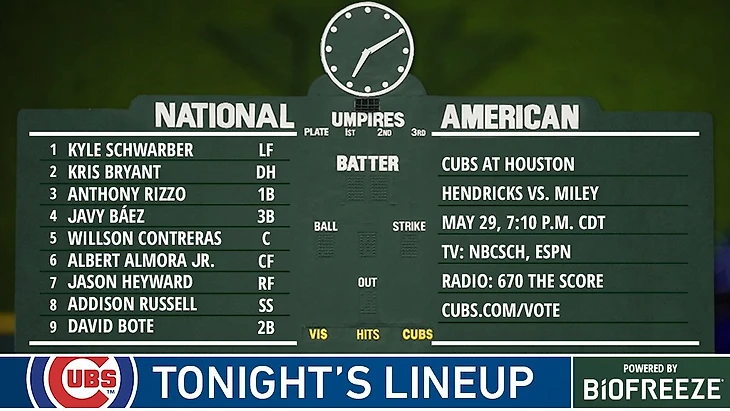 Houston Astros (W. Miley) - Chicago Cubs (K. Hendricks)