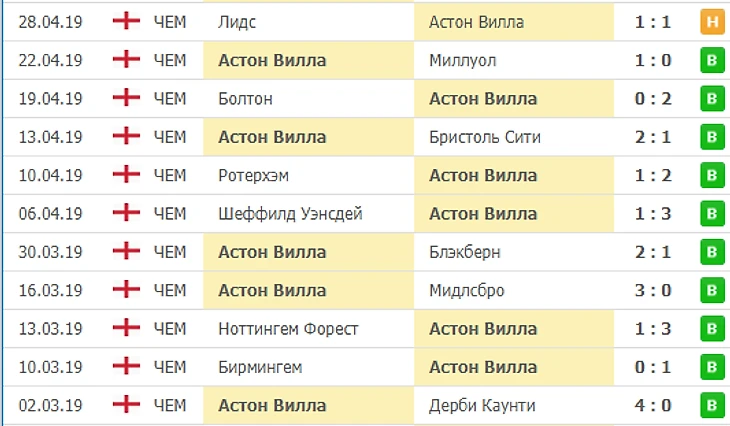 “Вилланы” провели концовку вот так, я сюда не стал включать поражение от ВБА в 46 туре, на тот момент Астон Вилла потеряла всякую мотивацию, им никак было не подняться выше или упасть ниже. А вот путь в плейофф у них получился следующим. Начиная с марта они одержали 10 подряд побед с общим счетом 23-5!! Пали Бристоль Сити, Шеффилд Уэнсдей, Миддлсбро, Ноттингем Форест, Бирмингем, Блекберн, их проходных матчей были только Ротерхем, Болтон и Миллуол, а началось все с домашнего разгрома Дерби 4-0, и сегодня закончится им же) это судьба)).